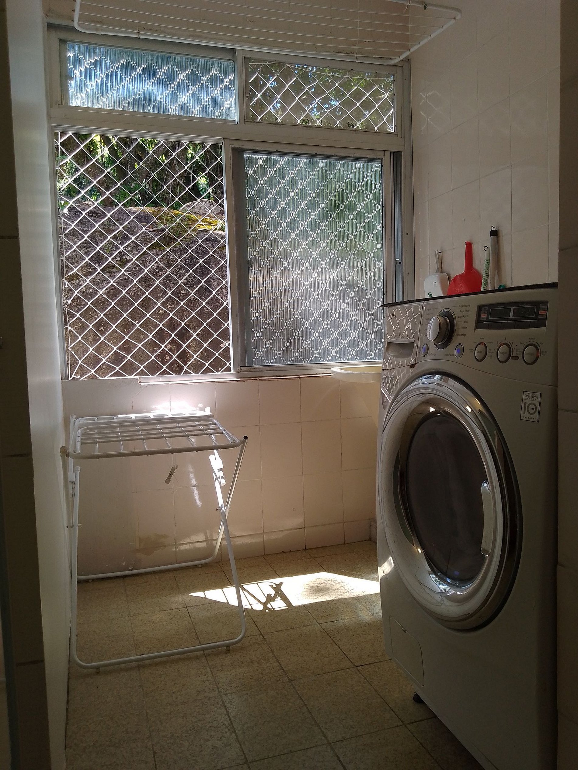 É proibido estender roupas na sacada, orientamos utilizar a área de serviço. (Sujeito à multa).