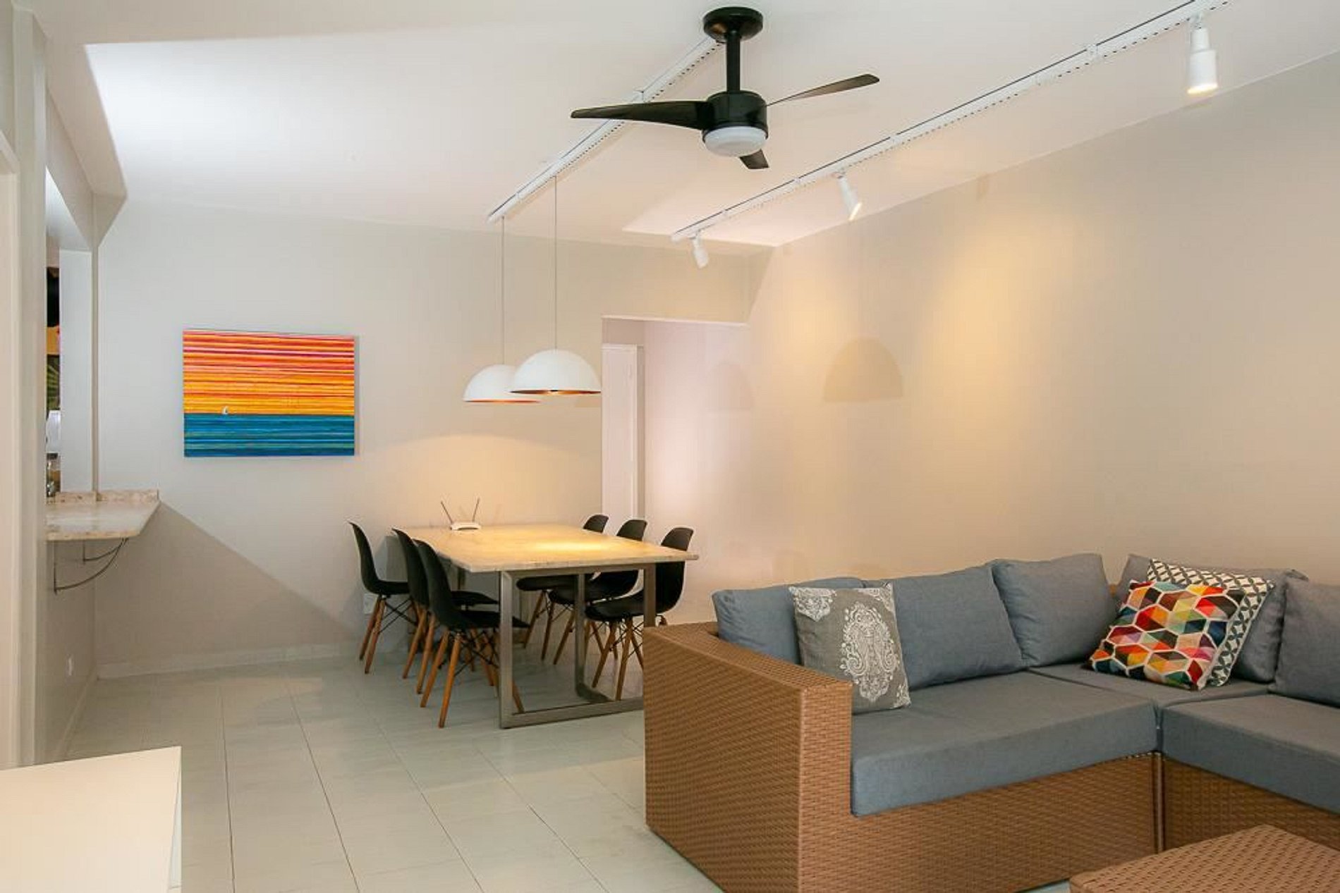 A cozinha é totalmente equipada, e a sala é moderna e tem internet wifi.
